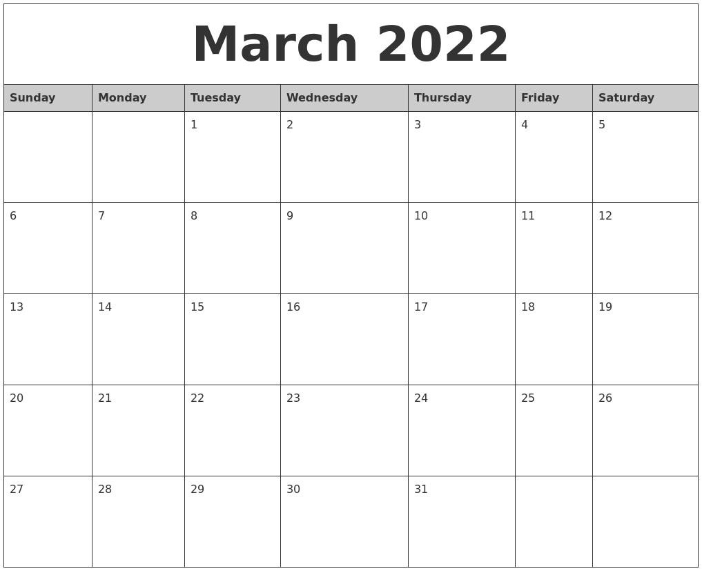 March 2022 Calendar Free Printable Calendar Templates